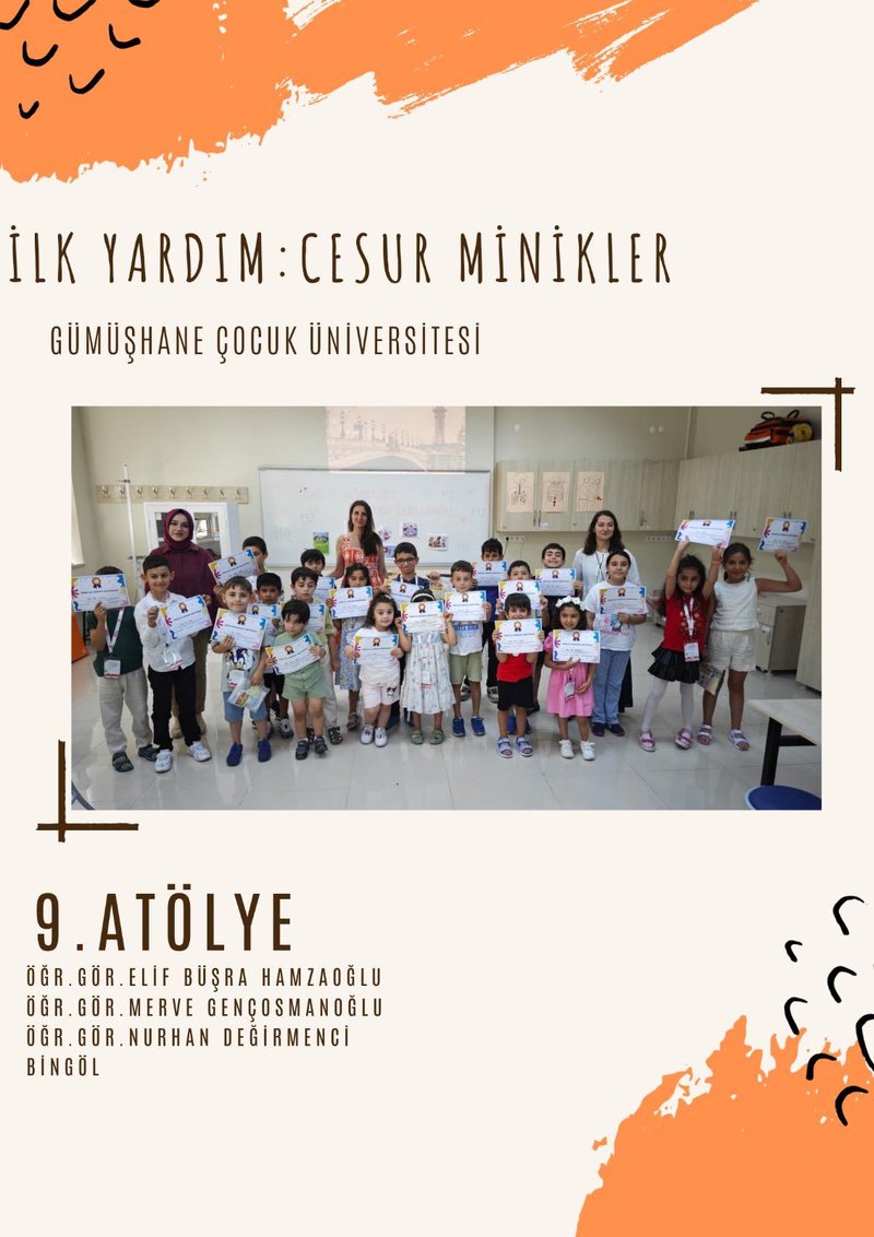 Atölyede çocuklarımız, basit yaralanmalarda neler yapabileceklerini, bandaj sarmayı ve yardım çağırmayı öğrendi. Her adımı deneyimleyerek öğrendiler ve eğlenceli bir şekilde pekiştirdiler.